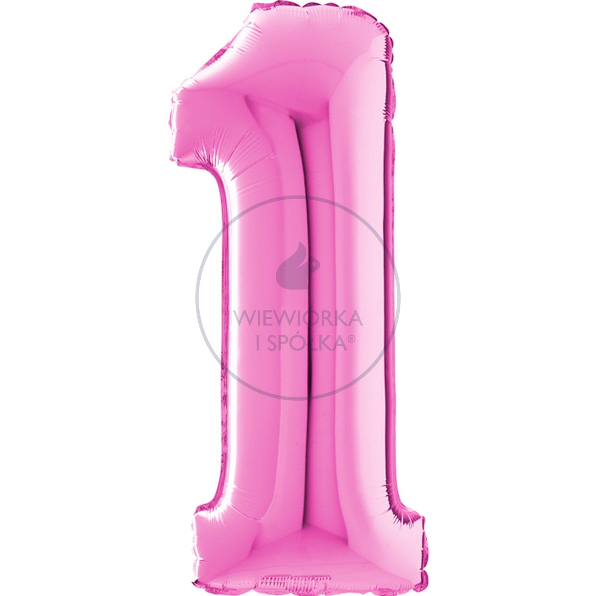 Piękny duży balon w kształcie różowej fuksjowej cyfry 1.