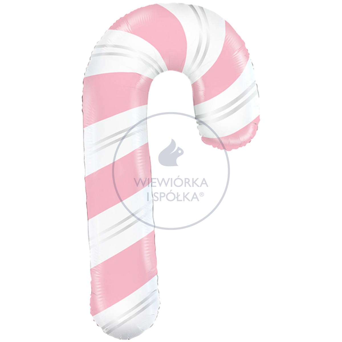 Piękny duży balon w kształcie słodkiej cukrowej laski w biało-różowe paseczki.