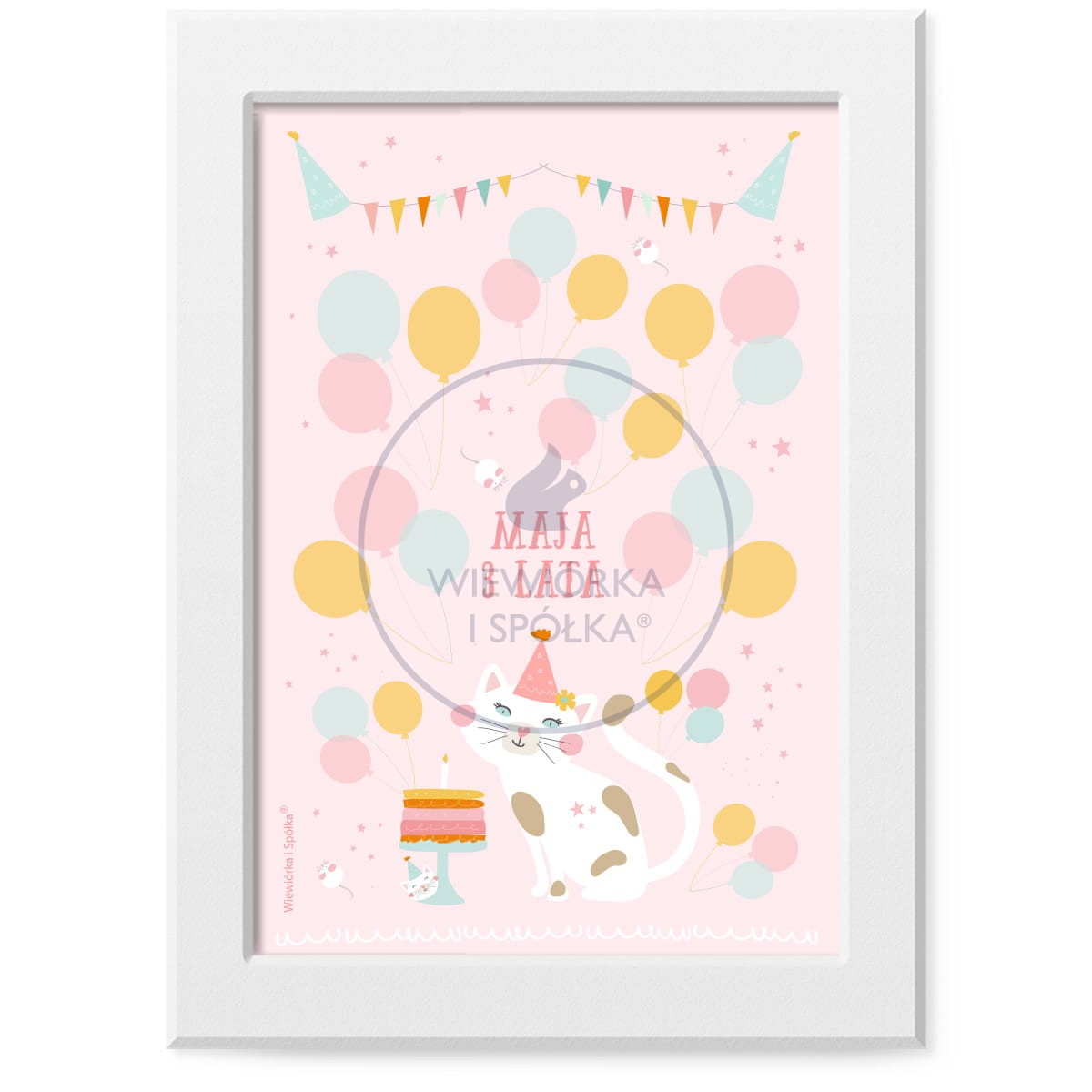 Drzewko Życzeń w ramce Kotek personalizowane / format A4