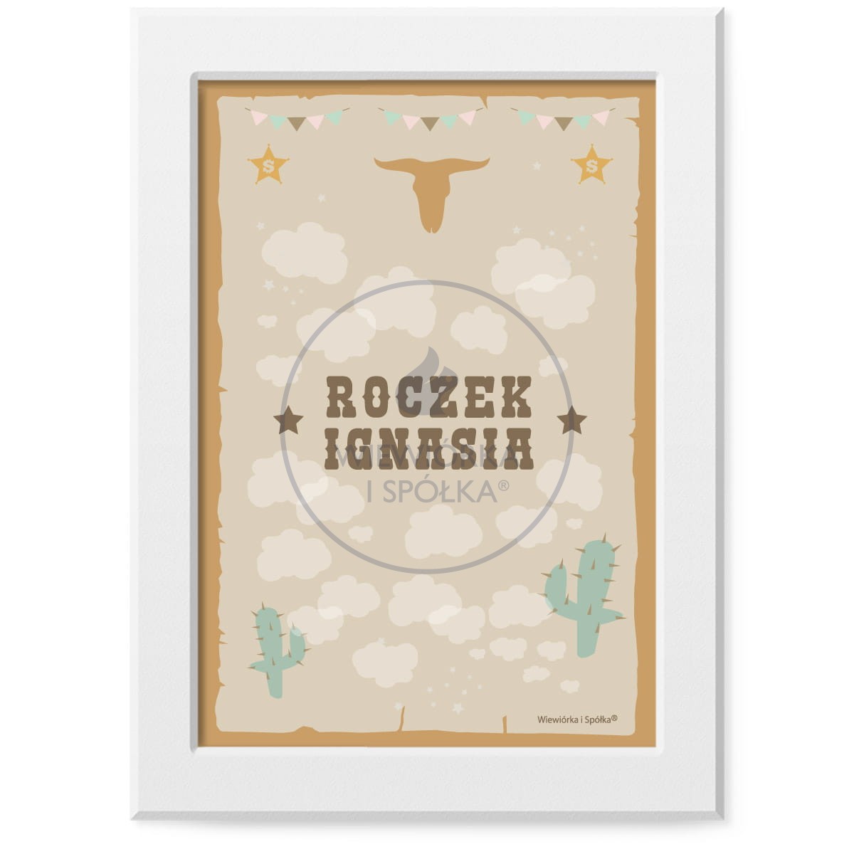 Przepiękne Drzewko Życzeń z kaktusami, kowbojskimi motywami i z personalizowaną treścią zaprojektowane przez Wiewiórka i Spółka.