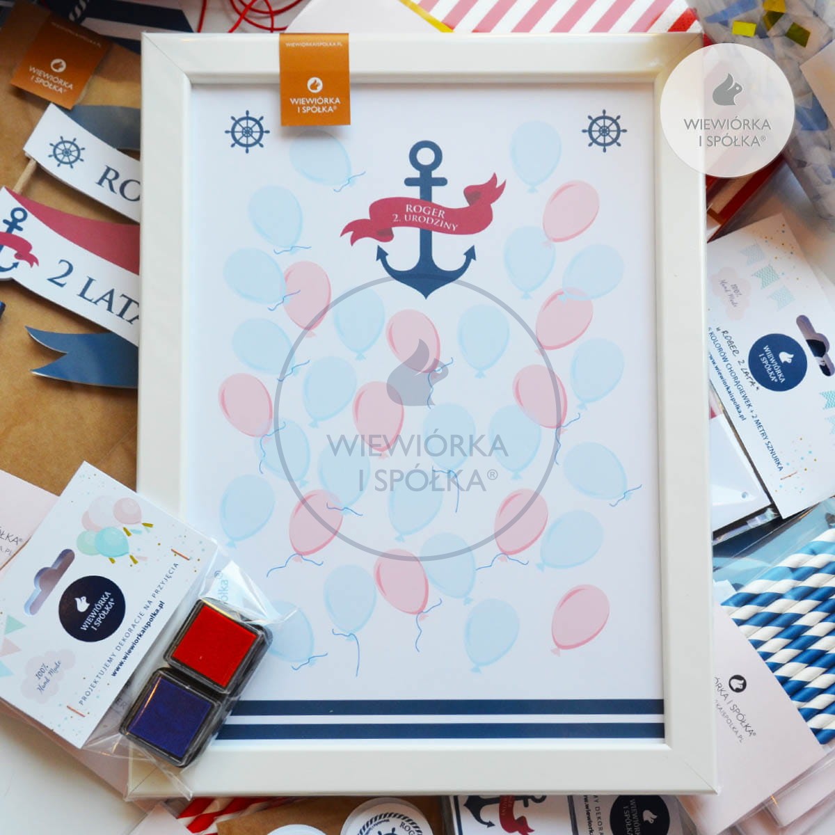 Przepiękne Drzewko Życzeń w marynistycznym stylu z personalizowaną treścią zaprojektowane przez Wiewiórka i Spółka.