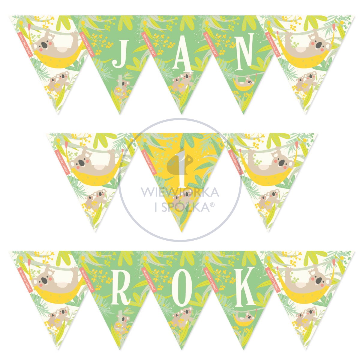 - policz flagi z literami oraz flagi ozdobne (z misiem koala w hamaku) w Twoim napisie, np. _ROK_ _OLKA_ to 11 flag