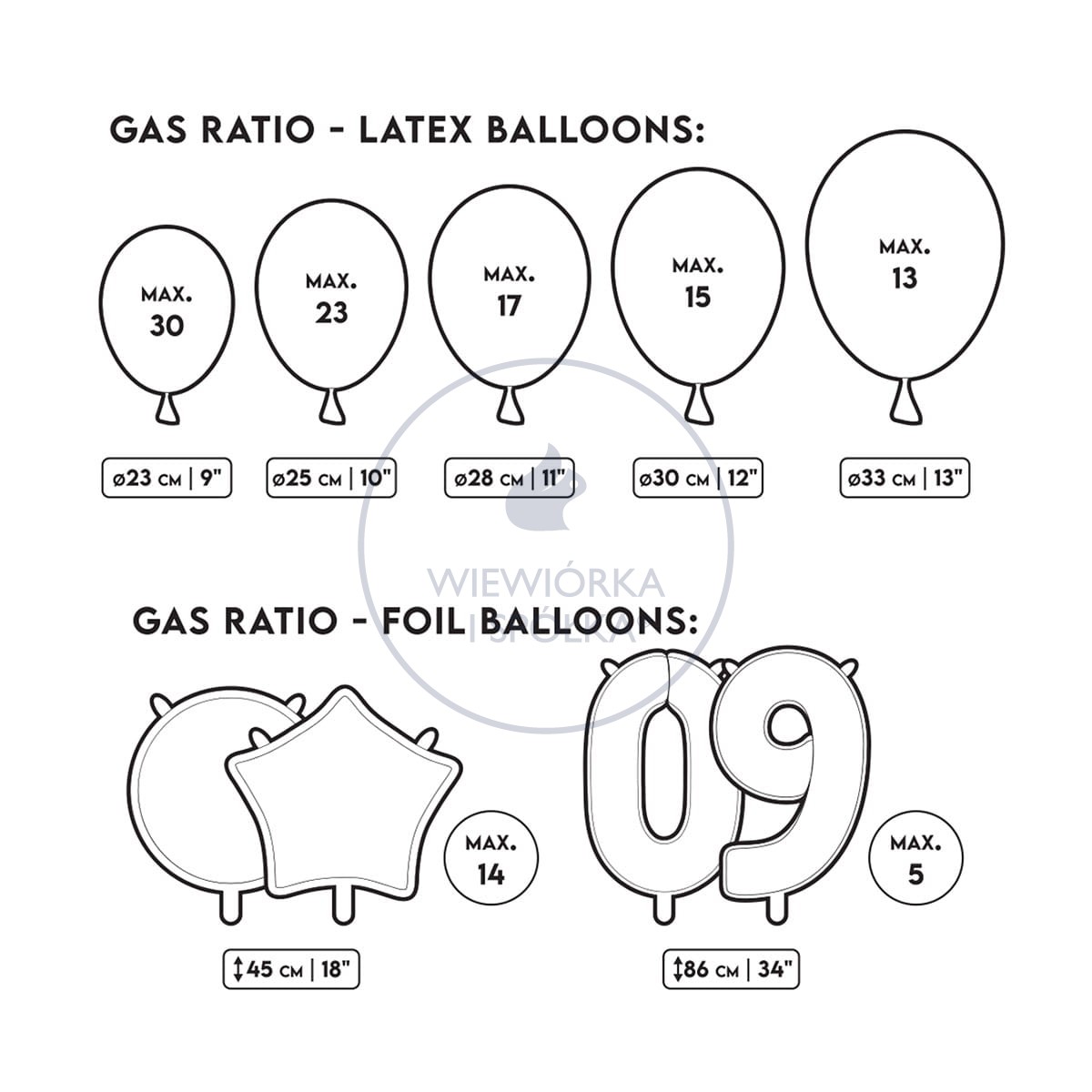- maksymalnie 17 sztuk balonów lateksowych wielkości 28 cm / 11"