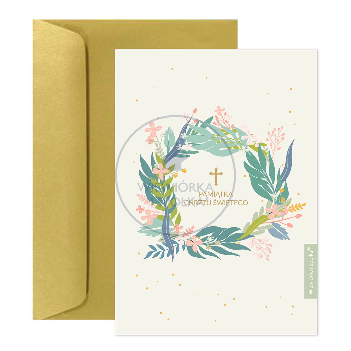Kartka składana i koperta Pamiątka Chrztu Świętego Minty Flowers