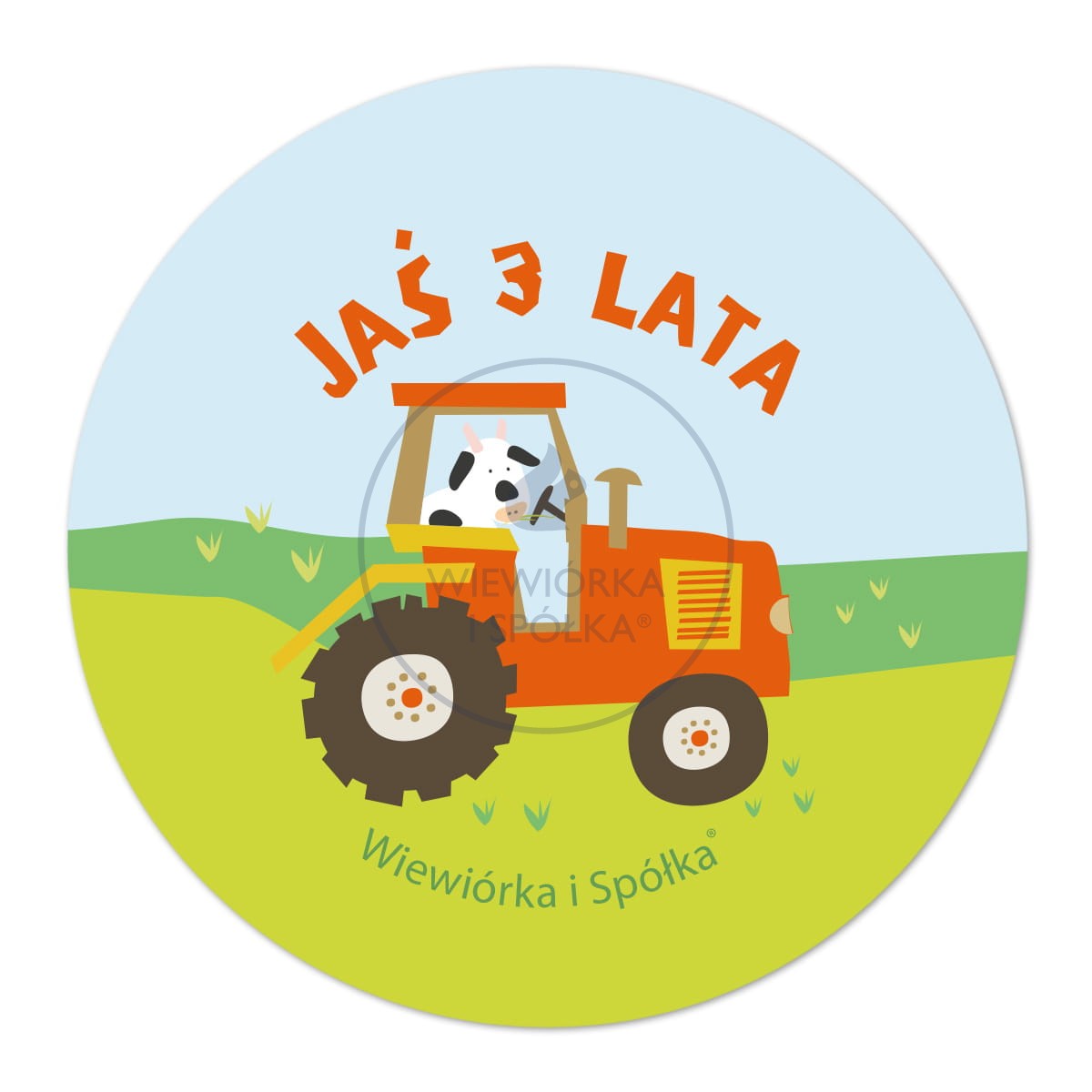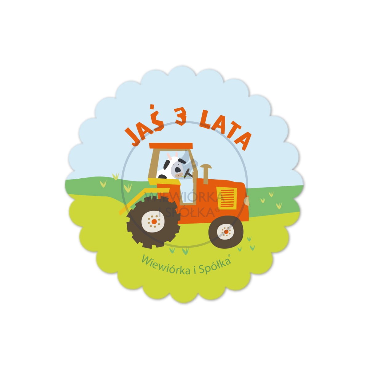 Komplet unikatowych, ręcznie wykonanych naklejek z traktorem oraz z personalizowanymi napisami, np. Jaś 3 lata, zaprojektowany przez Wiewiórka i Spółka.