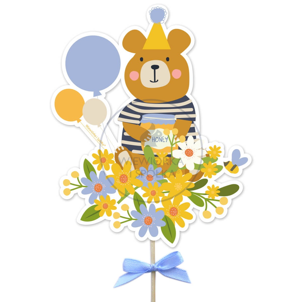 Zjawiskowy ręcznie wykonany topper na tort w kształcie misia, zaprojektowany przez Wiewiórka i Spółka.