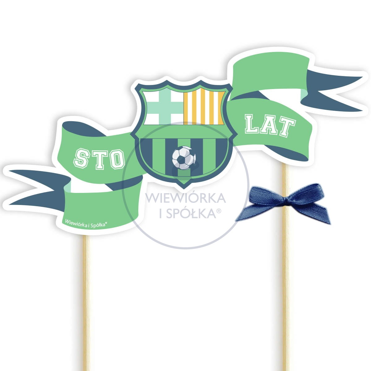 Zjawiskowy ręcznie wykonany piłkarski topper na tort oraz z napisem STO LAT, zaprojektowany przez Wiewiórka i Spółka.
