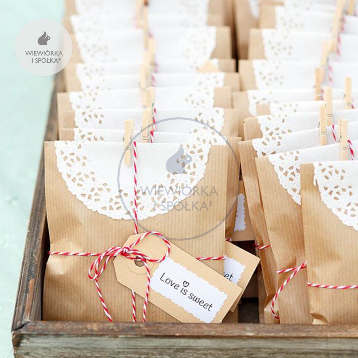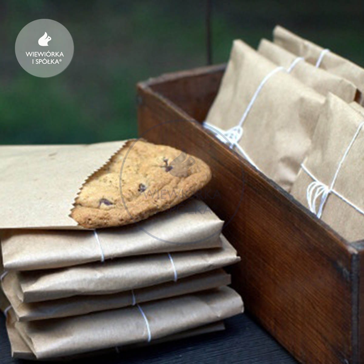 Wiewiórcze torebki świetnie sprawdzą się jako naturalne opakowanie upominków dla gości, np. własnoręcznie przygotowanych ciasteczek. Możesz przewiązać je sznurkiem, spiąć drewnianą klamerką oraz ozdobić personalizowanymi wiewiórczymi naklejkami lub personalizowanymi karnecikami.